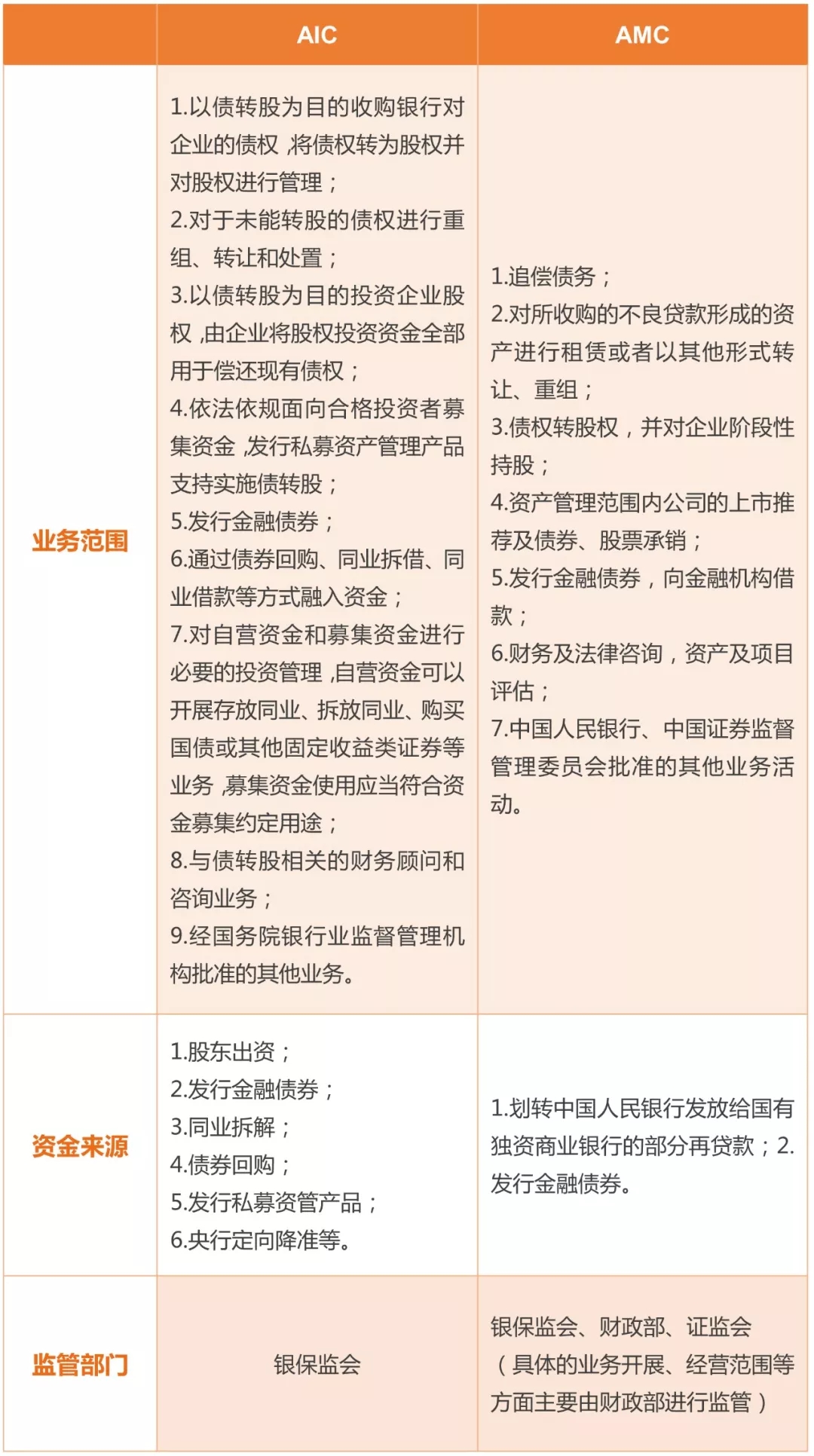 七、金融資產(chǎn)投資公司(以下簡稱AIC)與金融資產(chǎn)管理公司(以下簡稱AMC)的差異