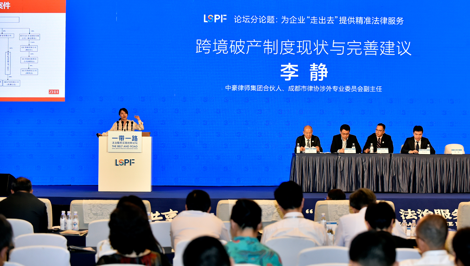 在下午的交流發(fā)言環(huán)節(jié),圍繞企業(yè)“走出去”面臨的法律風(fēng)險及法律服務(wù)需求和為企業(yè)“走出去”提供精準(zhǔn)法律服務(wù)兩個分論題,4位在川企業(yè)代表和4名涉外精英律師進(jìn)行了論壇交流發(fā)言。作為涉外律師的代表,李靜律師就“跨境破產(chǎn)制度現(xiàn)狀與完善建議”這一話題進(jìn)行了專題交流發(fā)言。