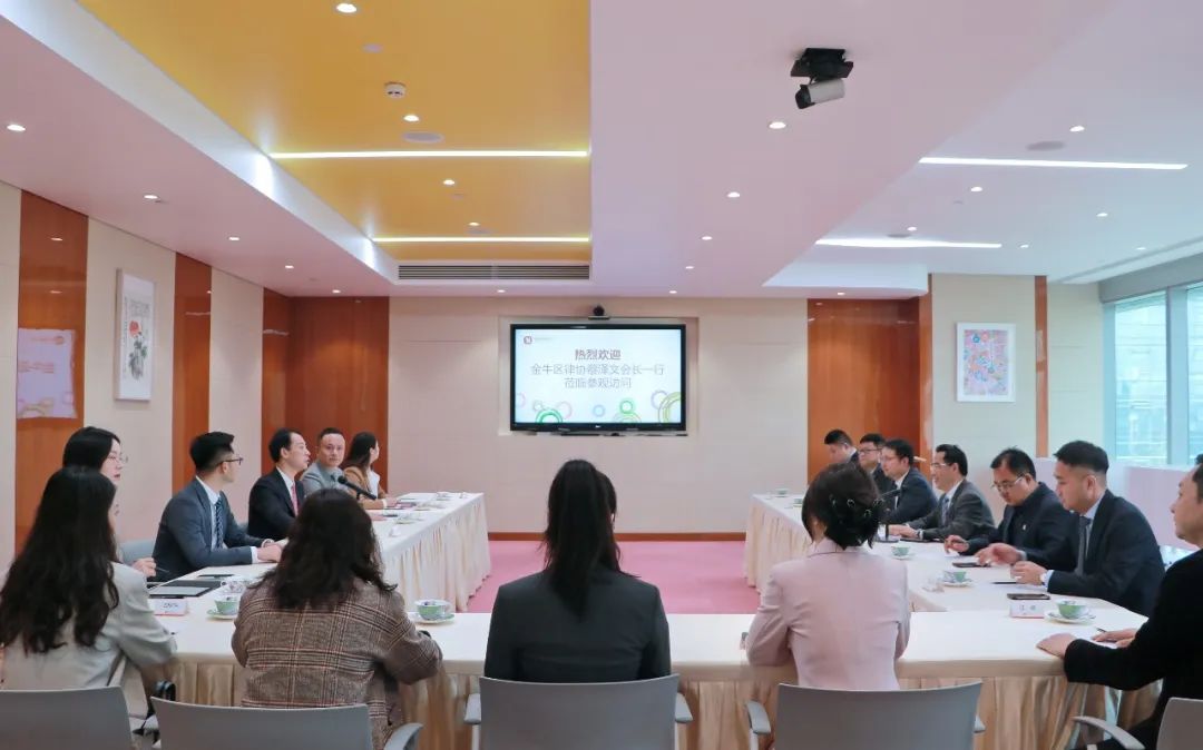 為加強成渝律師同行之間的交流合作,進一步探索律所品牌文化建設、提升專業服務能力和深入推進黨建工作,2024年3月21日,成都市律協金牛分會會長蔡澤文一行到訪中豪參觀交流。渝中區律工委主任、中豪黨委書記肖東,渝中區律工委副主任吳天福、副秘書長謝明華,中豪黨委副書記宋琴、合伙人劉卉靈等熱情接待并座談交流。