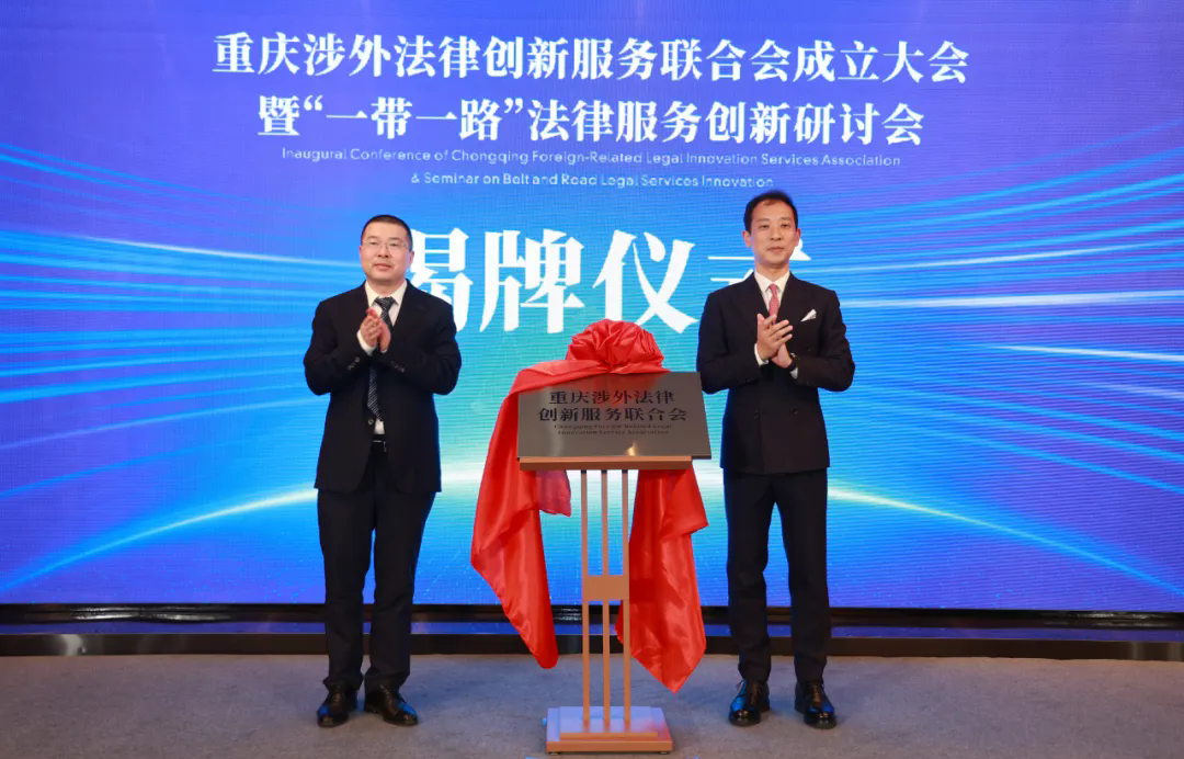 為深入貫徹落實習近平總書記關于“加強涉外法治建設”的重要指示精神,積極響應市委市政府打造“西部涉外法律服務高地”的戰略部署,為服務“一帶一路”、西部陸海新通道及成渝地區雙城經濟圈建設提供強有力的法治支撐,在重慶市司法局和重慶市律師協會的指導下,重慶涉外法律創新服務聯合會(以下簡稱聯合會)于2025年4月29日在重慶中央法務區正式掛牌成立,黨委書記肖東擔任聯合會首屆會長。渝中區司法局黨委書記、局長姜軍,市律協副會長韓利鋒等出席揭牌儀式。
