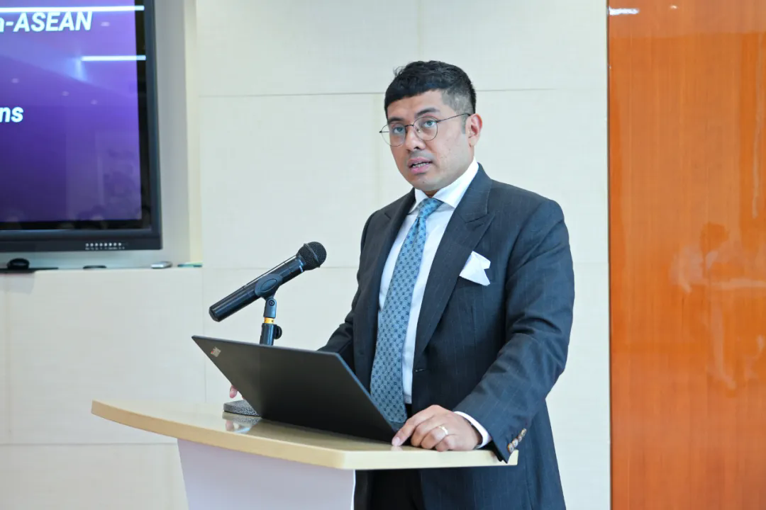 主題演講環節,新加坡 CHP LAW LLC律師事務所董事Mannar Rajkumar先生作了“東盟投資:新加坡的角色與法律考量”主題分享,強調了新加坡作為中國與東盟投資橋梁的核心優勢,指出新加坡憑借其全球金融中心地位、高效稅制、法治環境及反腐敗機制,成為企業區域總部和“一帶一路”樞紐。Rajkumar先生系統性地分析了投資東盟需注意的法律實際挑戰,包括嚴格的合規要求、較高的雇傭成本以及文化差異等,為與會企業通過新加坡架構拓展東盟業務提供了重要的參考。
