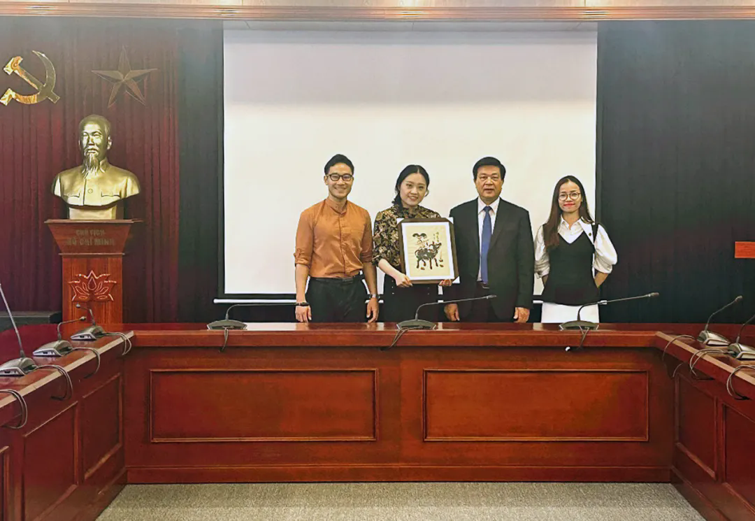 最后,DO NGOC THINH博士表達了對中國歷史文化和中國哲學的濃厚興趣,并向文主任贈送了來自其家鄉的傳統畫作,禮物體現了對美好富足生活的完美寓意和對遠道而來客人的美好祝福。此次交流互訪活動取得圓滿成功。